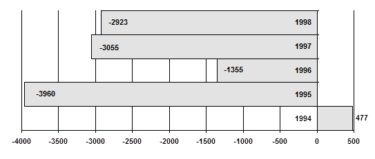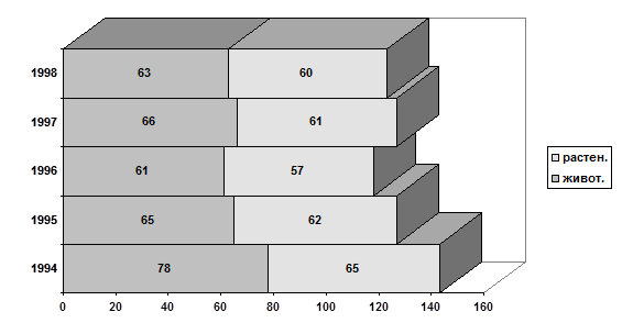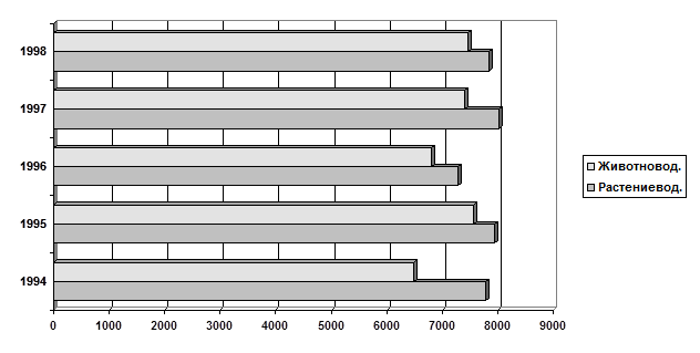 Анализ хозяйственной деятельности за 1994...1998 года показал, что объемы производства продукции в хозяйстве снизились. В 1998 году произошло сокращение стоимости валовой и товарной продукции по отношению к 1994 году, соответственно на 7,1% и 6,4%. Наблюдается рост уровня интенсивности при снижении экономической эффективности интенсификации. Прибыль хозяйством была получена лишь в 1994 году в размере 477,0 тыс. рублей, уровень рентабельности составил 2,7%. В 1998 году окупаемость составила 0,96 рублей.