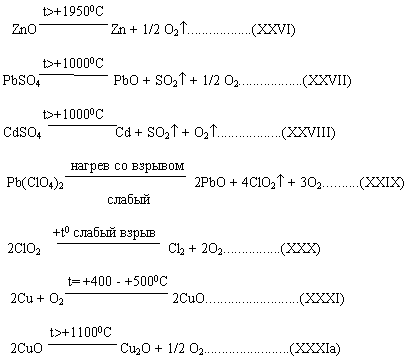 Zn+2NH4Cl+2MnO2=Zn(NH3)2Cl+H2O+Mn2O3.....(I) Zn+2NH4Cl+1/2O2=Zn(NH3)2Cl2+H2O......(II) Zn+NaOH+1/2O2=NaHZnO2......(III) Zn+CuO+NaOH=Zn(ONa)2+Cu+H2O......(IV) HgO+Zn+2KOH=Hg+K2ZnO2+H2O......(V) PbO2+H2SO4+Zn=PbSO4+ZnSO4+2H2O.......(VI) PbO2+2H2SO4+Cd=PbSO4+CdSO4+2H2O......(VII) PbO2+4HClO4+Pb=2Pb(ClO4)2+2H2O......(VIII) Ag2O+4KOH+Zn=2Ag+K2ZnO2+H2O......(IX) Cu2Cl2+Mg=2Cu+МgCl2......(X) 2AgCl+Mg=2Mg+MgCl2.....(XI) 6Mg+8H2O+C6H4(NO2)2=C6H4(NH2)2+6Mg(OH)2.....(XII) Mg+H2O+2MnO2=Mn2O3+Mg(OH)2......(XIII)