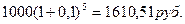 1000 рублей помещаются в банк под 10% годовых. Определить величину вклада через 5 лет, если проценты начисляются по: