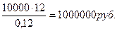 Заключен бессрочный договор на сдачу в аренду недвижимости. Ежемесячная арендная плата составляет 10 000 руб. Ставка дисконтирования 12%. Какова современная стоимость арендного договора?