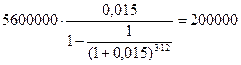 Рыночная стоимость объекта недвижимости составляет 8 000 000 руб. Согласно договору купли-продажи первоначально выплачивается 30 % стоимости, а оставшаяся сумма погашается в течение 3 лет ежемесячными платежами. Рассчитать величину ежемесячных платежей, если годовая ставка дисконтирования составляет 18 %.
