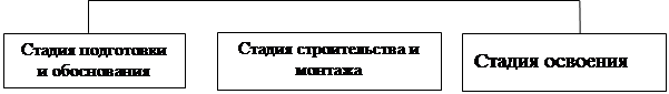 Процесс формирования и использования инвестиционных ресурсов охватывает определенный период, который принято называть инвестиционным циклом. Если рассматривать реальные инвестиции, то он включает следующие этапы: научные разработки; проектирование; строительство; освоение. Его можно представить следующей схемой (схема 2).
