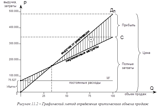 11.5.3 Определение критического объема продаж или точки безубыточности