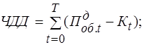чистый дисконтированный доход определяется как сумма текущих дисконтированных доходов (ТЧДД) за период реализации проекта, приведенная к начальному шагу, или как превышение интегральных результатов над интегральными затратами.