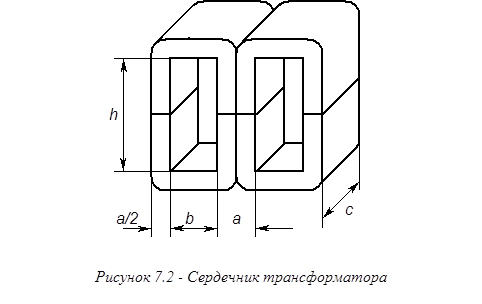 Определим геометрические размеры окна сердечника (рисунок 7.2):