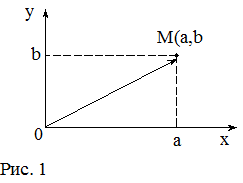 Не менее важной и удобной является интерпретация комплексного числа a+bi как радиус-вектора ОМ (см. рис.1), т.е. вектора, исходящего из начала координат О (о,о) и идущего в точку М (а;b). Разумеется, вместо радиус-вектора ОМ можно взять любой равный ему вектор.