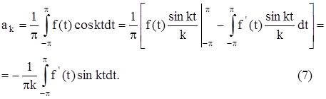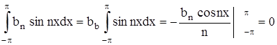 Ряд (1) мажорируем и его можно почленно интегрировать в промежутке (-π, π). Проинтегрируем обе части равенства (2):