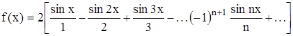 Таким образом, мы приходим к следующей задаче: выяснить существует ли для данной функции ƒ(x) на заданном промежутке такой ряд (1),который сходился бы на этом промежутке к данной функции. Если это возможно, то говорят, что на этом промежутке функция ƒ(x) разлагается в тригонометрический ряд.