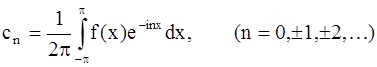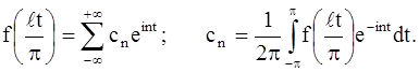 Пусть периодическая функция ƒ(х) с периодом 2π такая, что она представляется тригонометрическим рядом, сходящимся к данной функции в интервале (-π, π), т. е. является суммой этого ряда: