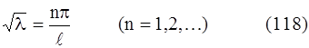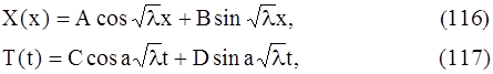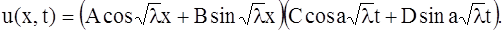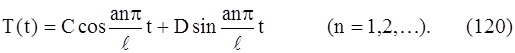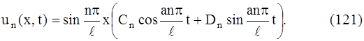 Для каждого значения n, следовательно, для каждого λ, выражения (119) и (120) подставляем в равенство (112)и получаем решение уравнения (107), удовлетворяющее граничным условиям (108) и (109). Это решение обозначим un (x, t):