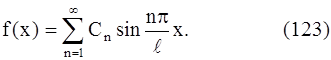 Если функция ƒ(x) такова, что в интервале (0, ℓ) ее можно разложить в ряд Фурье, то условие (123) будет выполняться, если положить