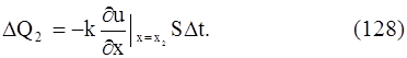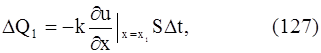 Количество тепла, протекающего за время ∆t через площадку ∆s, будет равно:
