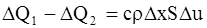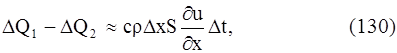 Приток ∆Q1 - ∆Q2 в элемент стержня за время ∆t будет равняться: