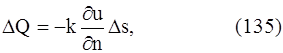 где k – коэффициент теплопроводности рассматриваемой среды, которую мы считаем однородной и изотропной, n – единичный вектор, направленный по нормали к площадке ∆s в направлении движения тепла. Таким образом, можем записать:
