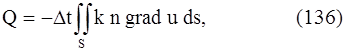 где n – единичный вектор, направленный по внешней нормали к поверхности S. Очевидно, что формула (136) дает количество тепла, поступающего в объем V (или уходящего из объема V) за время ∆t. Количество тепла, поступившего в объем V, идет на повышение температуры вещества этого объема.