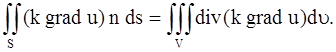 Вернемся к поставленной задаче. В рассматриваемой среде выделим малый объем V, ограниченный поверхностью S. Количество тепла, протекающего через поверхность S, будет равно: