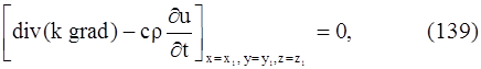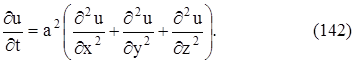 – оператор Лапласа. Уравнение (142) и есть уравнение теплопроводности в пространстве. Для того чтобы найти единственное