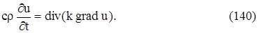 Так как мы можем выделить произвольный объем V в трехмерном пространстве, где происходит распространение тепла, и так как мы предполагаем, что подынтегральная функция в равенстве (138) непрерывна, то равенство (139) будет выполняться в каждой точке пространства. Итак,