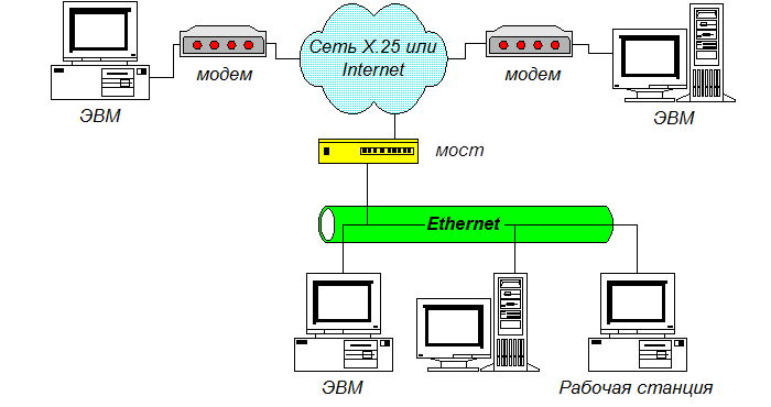 Рисунок 14 - Принцип объединения компьютеров в глобальных сетях.