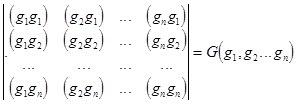 носит название детерминанта Грама системы векторов g1,g2...gn.