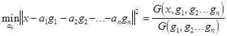, наименее уклоняющийся от вектора x. Действительно, вектор y- есть проекция x на G и, значит, он должен удовлетворять