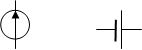 Наиболее часто применяемые условные графические обозначения источника напряжения представлены на рис. 1.3, а и б, где принятая положительная полярность напряжения источника указывается либо стрелкой внутри кружочка, либо большой и малой чертами, малая соответствует знаку «-», а большая - «+». Поскольку положительную полярность напряжения условились обозначать знаками «+», «-», для источника напряжения в программе применено обозначение, показанное на рис. 1.3, б.