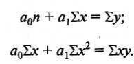 Для исчисления параметров а0 и а1х1 используется система нормальных уравнений: