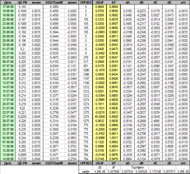Исследования проводились на основе материалов, любезно предоставленных серверами Центрального банка Российской Федерации и Московской центральной фондовой биржи, а так же текущей информации периодического издания “Коммерсант-Деньги” и информационного агенства РосБизнесКонсалтинг.