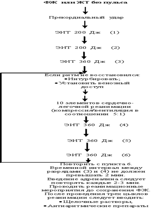 Схема 1. Руководство Европейского совета реаниматологов по лечению ФЖ