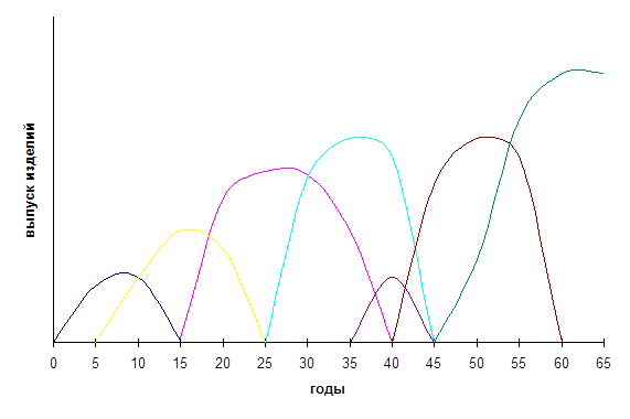 Экономический жизненный цикл производства – это следующие один за другим подъемы и спады уровней экономической активности в течение нескольких лет. Вопросам цикличности в развитии производства посвящено множество работ известных ученых, как российских, так и зарубежных.