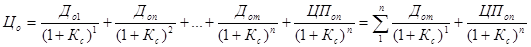 Алгоритм достаточно прост. Его можно представить следующим образом. Инвестор вкладывает денежные средства в акции предприятия. Исходные данные для расчета: цена акции на прогнозируемый период (Цо), величина дивиденда в анализированном году (До), срок, на который инвестор собирается владеть акцией (t), норма доходности – ожидаемый темп роста дивиденда (g), требуемый уровень прибыльности (К).