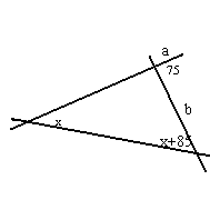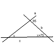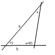 Возможно ещё и такое размещение прямых. 180°–85°+х°+х°+75°=180° х=5°. |