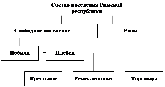 Задание №2 По данной схеме определить на какие две основные группы делилось население Рима после победы плебеев и провести линию в схеме, разделяющую данные фигуры. (Ответ учащихся покажет степень понимания ими рабовладельческих отношений, установившихся в Риме, и понимания ими сути борьбы патрициев и плебеев.)