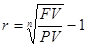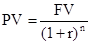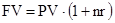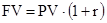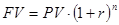FV — будущая стоимость, PV — текущая стоимость (первоначальная стоимость на момент инвестирования = основная сумма вклада при первоначальном инвестировании), r — ставка процента в периоде начисления в долях единицы, n — число периодов начисления. Выражение