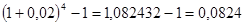 Пример 6 По банковскому вкладу ежеквартально начисляют доход 2% от первоначальной суммы вклада. Найти ставку процента (в годовых) с учетом реинвестирования полученного дохода.