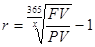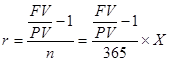 откуда С учетом необходимости приведения процентных ставок к одному временному периоду их общие формулы расчета видоизменяются в зависимости от того, в каких единицах (днях, месяцах, кварталах) выражен период инвестирования. Например, если инвестиция имеет срок, выраженный в днях, то число периодов n =365, где х — число дней, по формуле (6) процентная ставка равна: