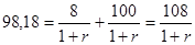 Пример 8 Облигация сроком 1 год погашается по номиналу, выплачивается ежегодный купонный доход 8% номинала. Рыночная цена облигации — 98,18 номинала. Найти внутреннюю ставку доходности. Пусть номинал — 100, тогда