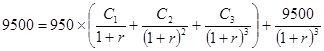 где PV = FV = 9 500, C1 = C2 = C3 = 950. Получаем уравнение: