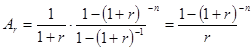 Для экономии времени коэффициент дисконтирования аннуитета может быть вычислен по формуле суммы геометрической прогрессии со знаменателем 1/(1 + r):