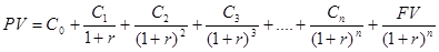 Где Со — первый платеж, не дисконтированный, поскольку он получен в момент времени, на который рассчитывается текущая стоимость. Его будущая стоимость равна текущей стоимости. Математическое объяснение таково: для платежей, приходящих во время 0: