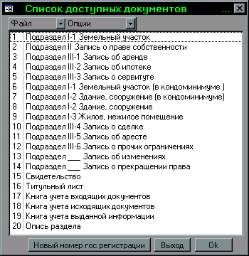 Эта регистрационная база позволяет точно систематизировать и классифицировать поступающую информацию по содержанию и значению. Кроме того, есть возможность произвести быстрый поиск землепользователя или информации того или иного содержания и значения. Регистрационная база представляет собой список рабочих окон, различных по содержанию и значению.