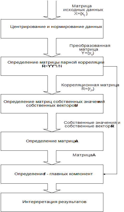· проведение обратного факторного анализа - получение значений главных компонент для каждого объекта, по его признакам;