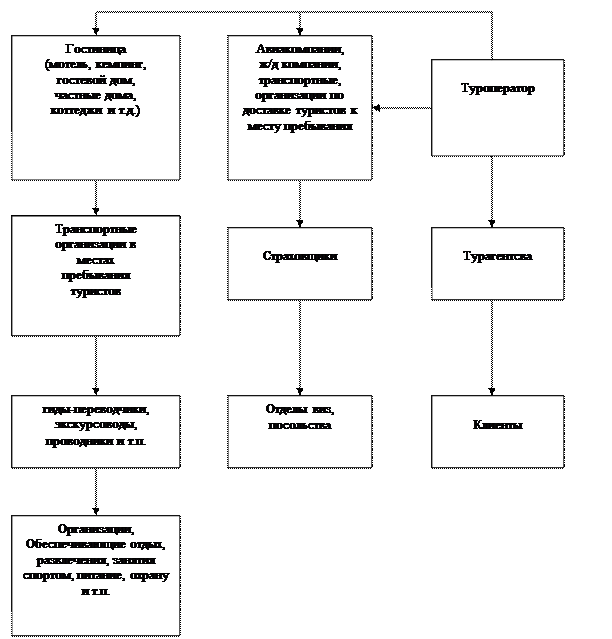 туристов к месту пребывания Туроператор Транспортные организации в местах пребывания туристов Страховщики Турагентсва гиды-переводчики, экскурсоводы, проводники и