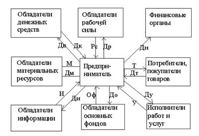 В условиях рынка от предпринимателя требуется умение — и даже предрасположенность — действовать в союзе с другими предпринимателями и вести постоянный поиск наиболее эффективных партнерских связей, в ходе которого предприниматель осуществляет переориентацию своей деятельности.