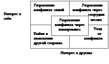 5. Через компромисс: учет интересов всех сторон, реализация через переговоры, в ходе которых каждая сторона идет на уступки. Но здесь не удается добиться взаимной абсолютной удовлетворенности, но нет и абсолютной неудовлестворенности.