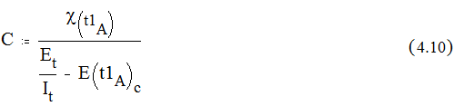Из величин, входящих в формулы (4.2) и (4.3) ,не известны начальное значение ошибок в АСОД (Et) и коэффициент пропорциональности – С. Для их определения прибегают к следующим рассуждениям. В процессе тестирования собирается информация о времени и количестве ошибок на каждом прогоне, т.е общее время тестирования t1 складывается из времени каждого прогона: