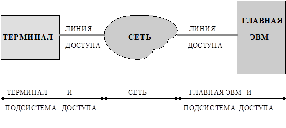 Задержки в сетях связи ЭВМ могут быть проанализированы при рассмотрении только самой сети или всей системы от абонента до абонента (“насквозь”). В этом пункте анализируется среднее значение интегральной задержки, с которой сталкивается пользователь при работе с запросно-ответными прикладными задачами, используя для взаимодействия с удаленной ЭВМ коммуникационную программу(программное обеспечение для удаленного доступа) , которую будем называть терминалом , через линию доступа в сеть общего пользования с пакетной коммутацией.