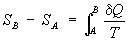 (интегральное определение энтропии.). Интегрирование здесь ведется вдоль пути любого квазистатического процесса, связывающего состояния А и В, при этом, согласно равенству Клаузиуса, приращение энтропии. DS = SB - SA не зависит от пути интегрирования.