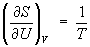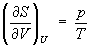 откуда следует, что при выборе в качестве независимых переменных внутренней энергии U и объёма V частные производные энтропии связаны с абсолютной температурой и давлением соотношениями: