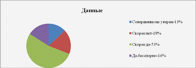 «По диаграмме видно, что 69 % (53 % — «скорее да» + 16 % — «да, бесспорно») студенты связывают свою судьбу с выбранной профессией, однако при этом каждый третий после окончания учебного заведения не собирается работать по специальности (18 % — «скорее нет» + 13 % — «совершенно не уверен»)».[3]